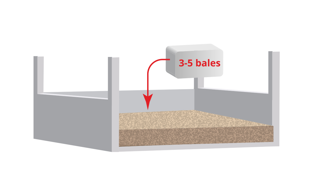 Rozprowadź równomiernie 3-5 bel wiórów na powierzchni boksu o powierzchni około 12 m², tworząc warstwę o grubości 10-15 cm