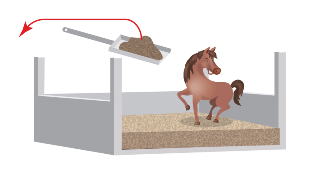 Codziennie usuwaj mokre miejsca (mocz) oraz odchody koni, aby utrzymać higieniczne warunki